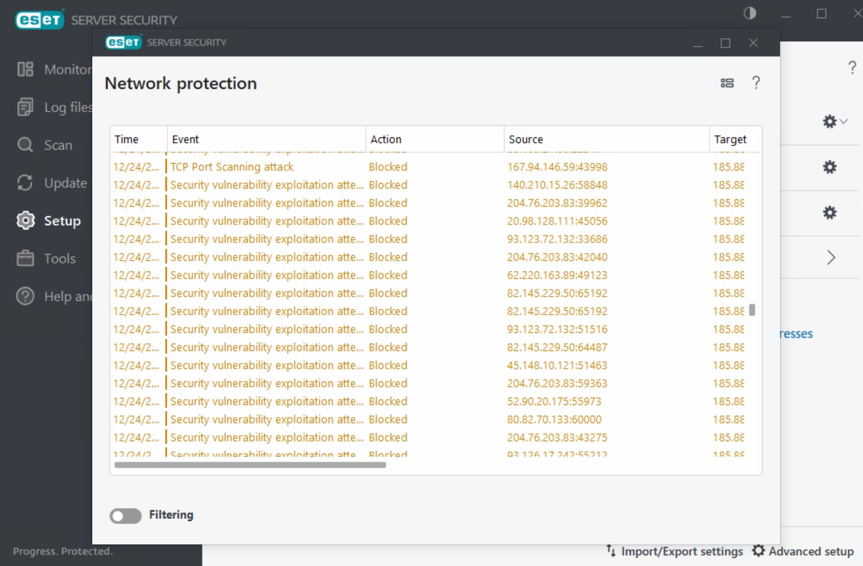 در تصویر بالا نمونه دفع حملات سرور سکیوریتی را می بینید